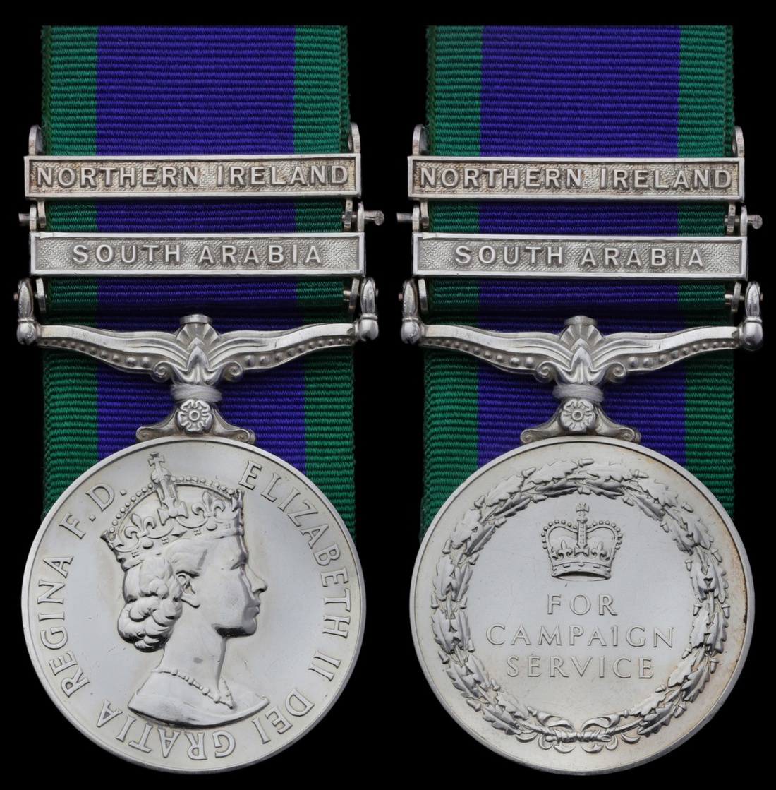 General Service 1962-2007, 2 clasps, South Arabia, Northern Ireland (24094921 Gnr. K. Seaward. RA.), pin replaced between first and second clasps, minor contact wear, very fine