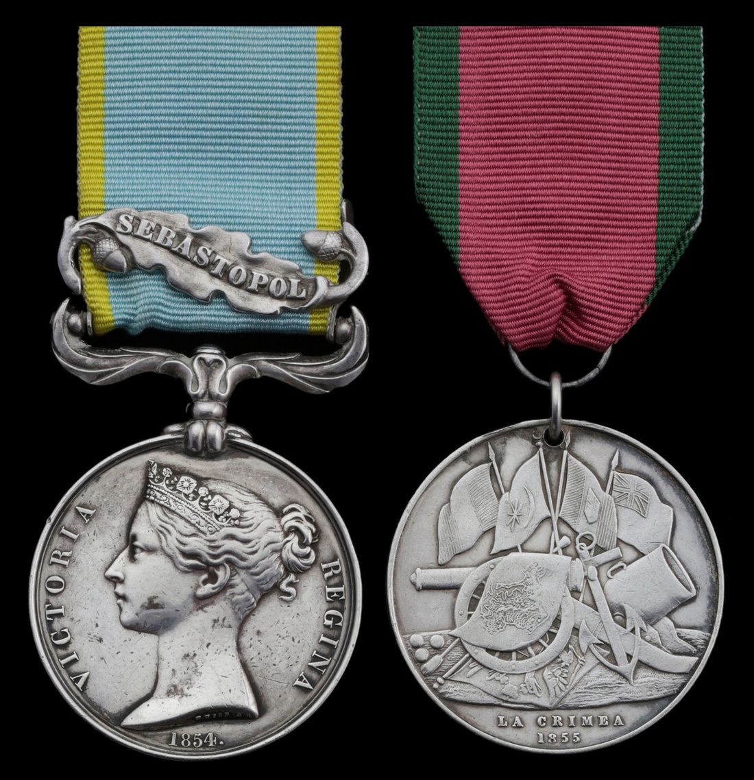Crimea 1854-56, 1 clasp, Sebastopol; Turkish Crimea 1855, Sardinian die, pierced with dual ring suspension, neatly erased, very fine (2)