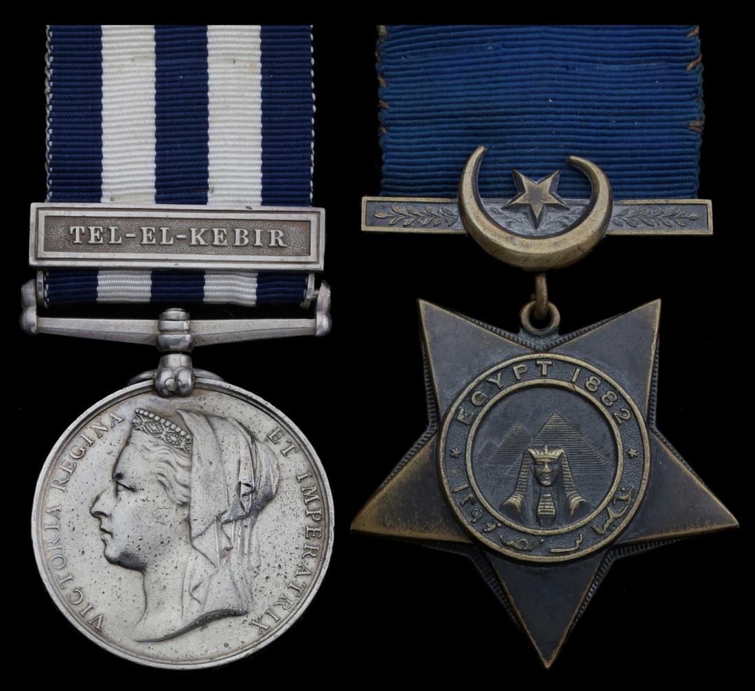 Egypt and Sudan 1882-89, dated reverse, 1 clasp, Tel-El-Kebir (H. John. Gunr. R.M.A.); Khedive's Star 1882, unnamed as issued, nearly very fine (2)