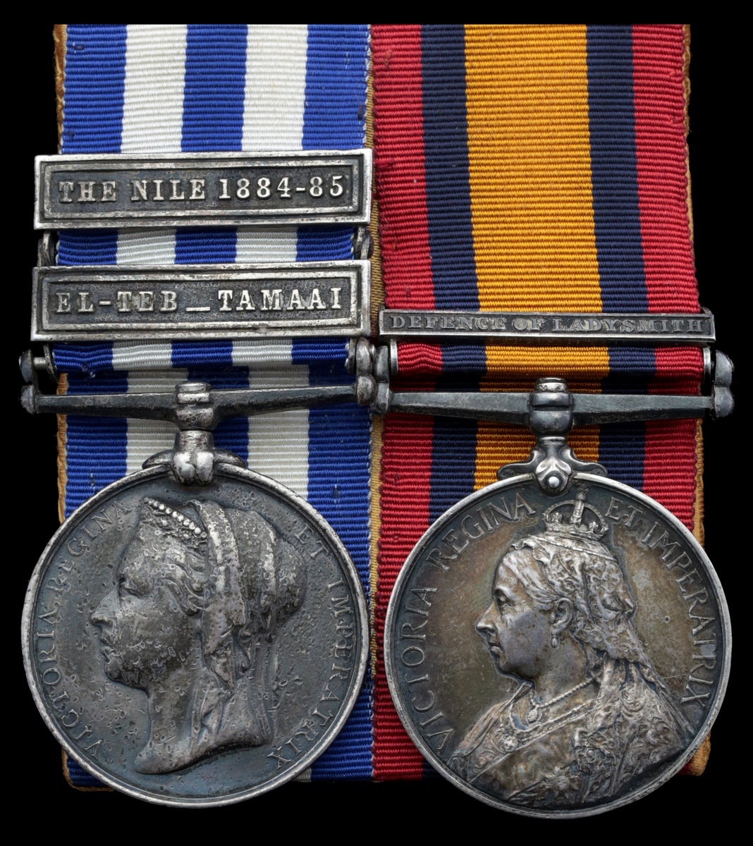 Egypt and Sudan 1882-89, undated reverse, 2 clasps El-Teb_Tamaai, The Nile 1884-85 (Lieut: H. G. Marsh, 19th Hussars); Queen's South Africa 1889-1902, 1 clasp, Defence of Ladysmith (Major. H. G. Marsh. 19/Hrs.), unit with official correction, severe pitting and some edge wear to first, contact wear overall nearly very fine (2)