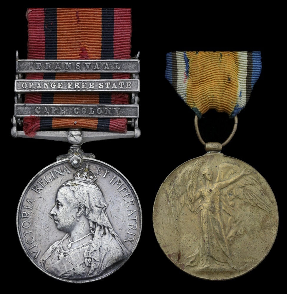 Queen's South Africa 1899-1902, 3 clasps, Cape Colony, Orange Free State, Transvaal (9125 Serjt: W. Lowe. Liverpool Regt.); Victory Medal 1914-19 (750 Pte. W. Lowe. 13 Bn. A.I.F.), first rather worn, nearly very fine (2)