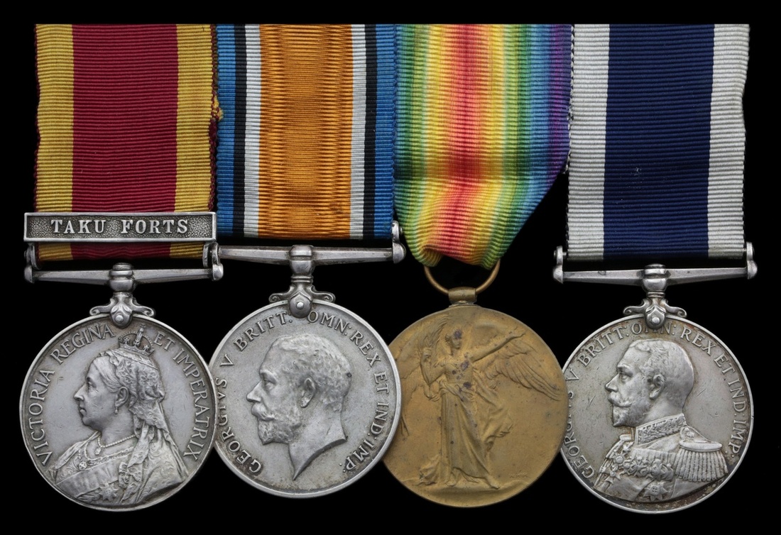 China 1900, 1 clasp, Taku Forts (P.O.6543 A. W. Brooker. H.M.S. Alacrity.), re-engraved naming; British War and Victory Medals (4330 A. W. Brooker. Off. Std-2. R.A.N.); Royal Navy L.S. & G.C., G.V.R. (PO.13649 A. W. Brooker, Private. R.M.L.I.), mounted as worn, very fine (4)
