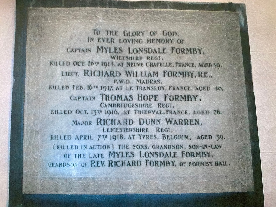 Three: Captain M. L. Formby, 1st Battalion, Wiltshire Regiment, who was killed in action at Neuve Chapelle on 26 October 1914