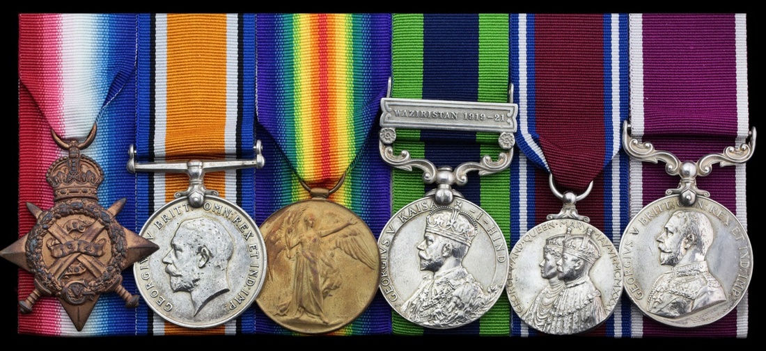 George Hewitt, a native of Sheffield, Yorkshire, joined the Royal Artillery on 24 September 1908. During the Great War he served in France with the 13th Brigade, Royal Field Artillery from 14 October 1914-24 December 1915, thence transferring to India. Remaining there, Hewitt joined the Indian Army Ordnance Corps and was made Conductor in 1936 (Gazette of India No. 128 of February 1936, refers). He was declared unfit for further service in November 1937.