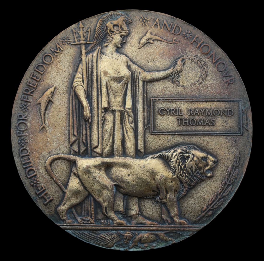 Cyril Raymond Thomas was born at Bilbao, Spain as a British Subject in 16 June 1898, the son of Octavius and Pheobe Thomas, his father worked for a coal shipping company. The family was a military one as Thomas' grandfather had been a Lieutenant with the 63rd Foot who had died at Solon, India having achieved the rare distinction of being promoted from the ranks in 1876. Attesting with the Artists Rifles as a reservist on 15 June 1916 Thomas was mobilised on 4 January 1917 as a Private with the number 10462. Recommended for a commission on 8 March 1917 he joined 'A' Company at Hare Hall Camp on an Officer Training Course.