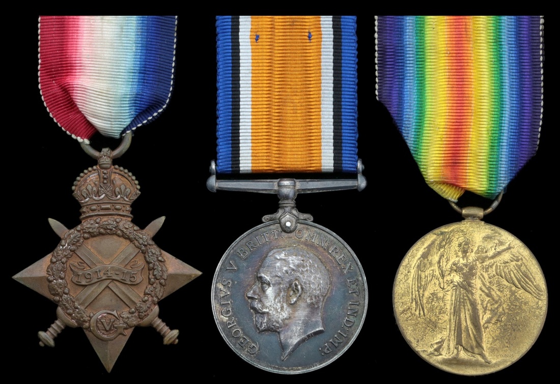 William Scholfield entered the war in France on 2 February 1915 with the 2nd Battalion, Manchester Regiment. Not long after this he was wounded, suffering a gunshot to the chest on 20 April 1915, he was treated first by 14th Field Ambulance and passed on to No. 3 Casualty Clearing Station. Promoted Sergeant during the course of the war he transferred to the Class Z reserve on 9 February 1919; sold together with copied M.I.C.