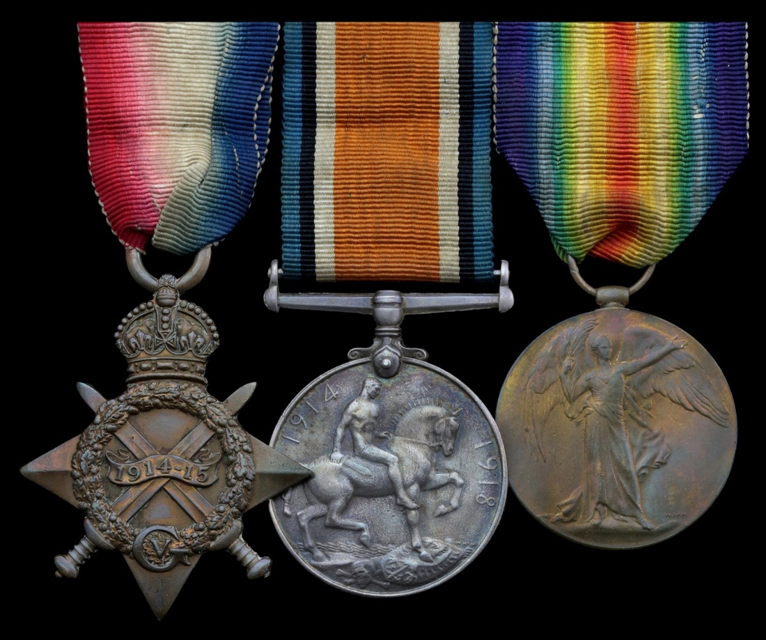 1914-15 Star (G-5364 L. Cpl. M. O'Mahoney. R. Muns. Fus.); British War and Victory Medals (G-5364 Pte. M. O'Mahoney. R. M. Fus.), very fine (3)