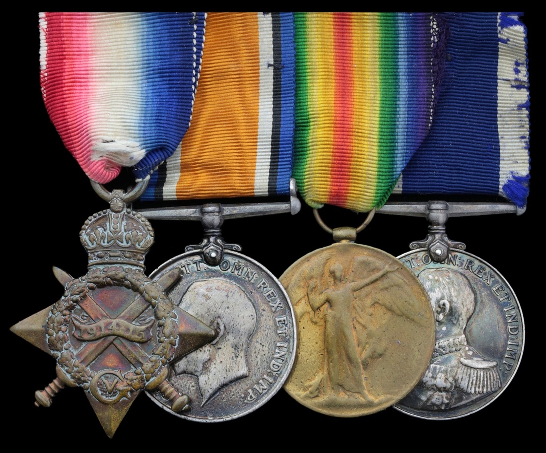 1914-15 Star (K. 21074, F. G. Fex. Sto. 1., R.N.); British War and Victory Medals (K. 21074 F. G. Rex. Sto. 1. R.N.); Royal Navy L.S. & G.C., G.V.R. (K. 21074 F. G. Rex. Sto. 1, H.M.S. Enterprise.), mounted as worn, worn, fine (4)
