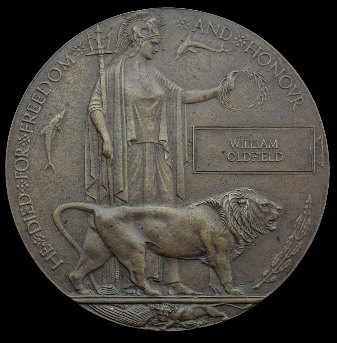 1914-15 Star (4286 Pte. W. Oldfield. Lan. Fus.); British War and Victory Medals (4286 Pte. W. Oldfield. Lan. Fus.); Great War Bronze Memorial Plaque, in card envelope of issue (William Oldfield), very fine (4)