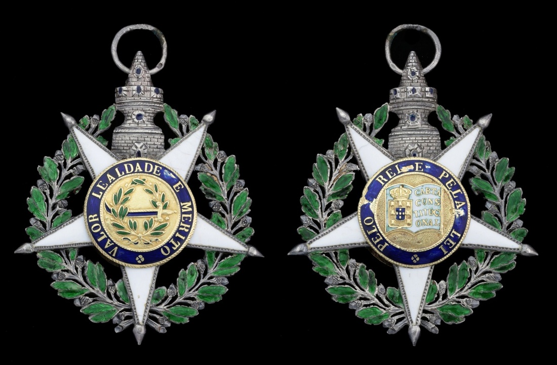 (x) Portugal, Order of the Tower and the Sword, sash Badge, 54mm, silver, silver-gilt and enamel, silver mark to loop, rather worn, nearly very fine