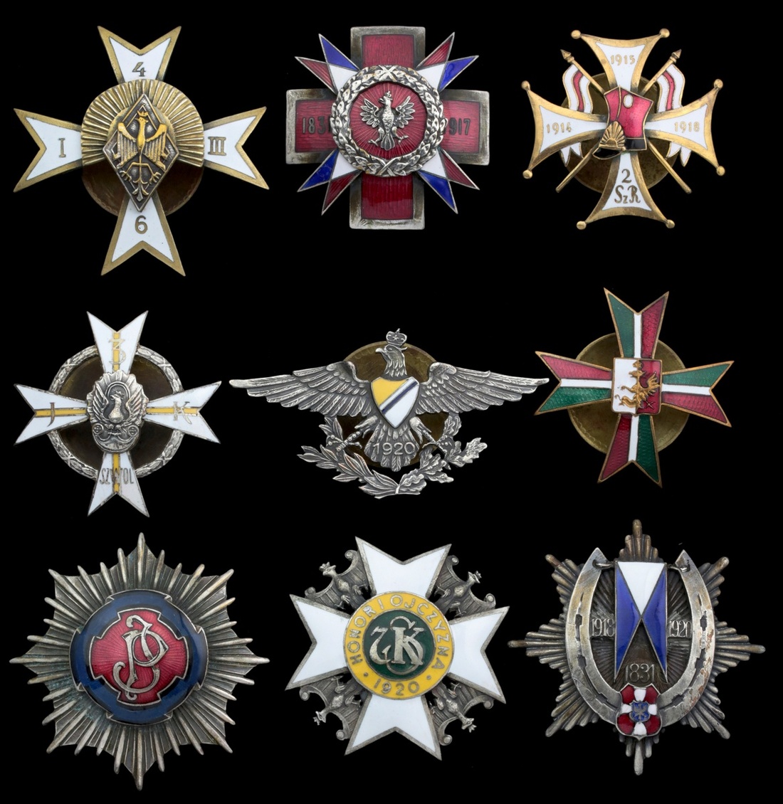 A very fine collection of enamelled Polish Unit Badges of Cavalry interest