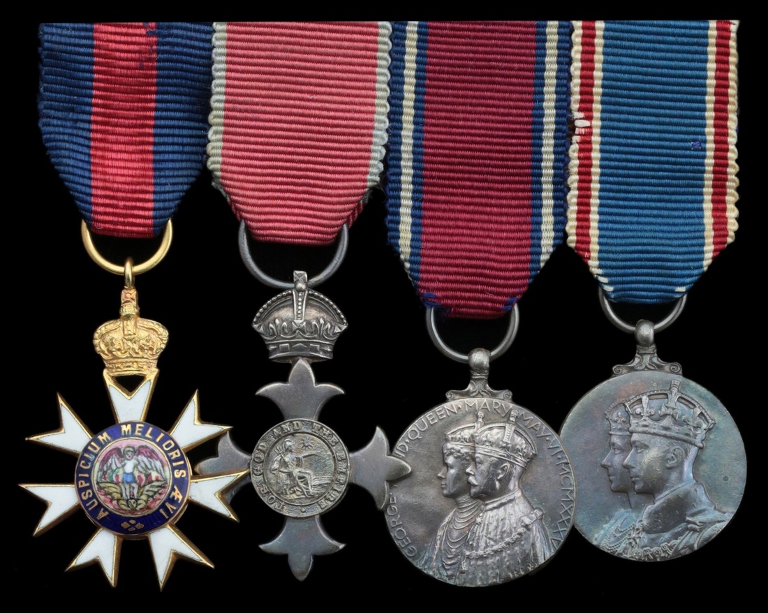 The Most Distinguished Order of St Michael & St George, C.M.G. Badge, gold and enamel; The Most Excellent Order of the British Empire, Civil M.B.E. Badge, silver; Jubilee 1935; Coronation 1937, mounted as worn, good very fine (4)