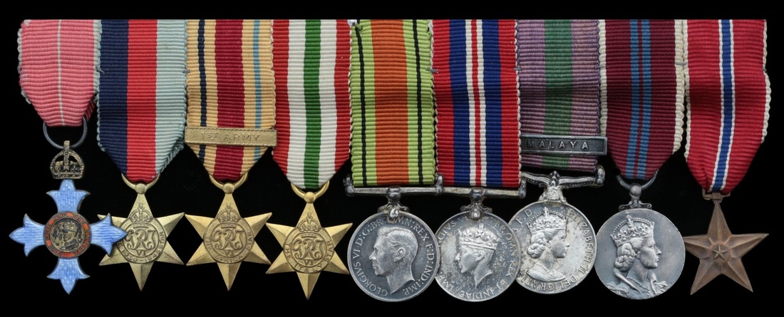 The Most Excellent Order of the British Empire, (C.B.E.) Military Division, G.VI.R., silver-gilt and enamel; 1939-45 Star; Africa Star, with 1st Army Clasp; Italy Star; Defence and War Medals 1939-45; General Service 1918-62, 1 clasp, Malaya; Coronation 1953; United States, Republic, Bronze Star, mounted as worn, very fine (9)