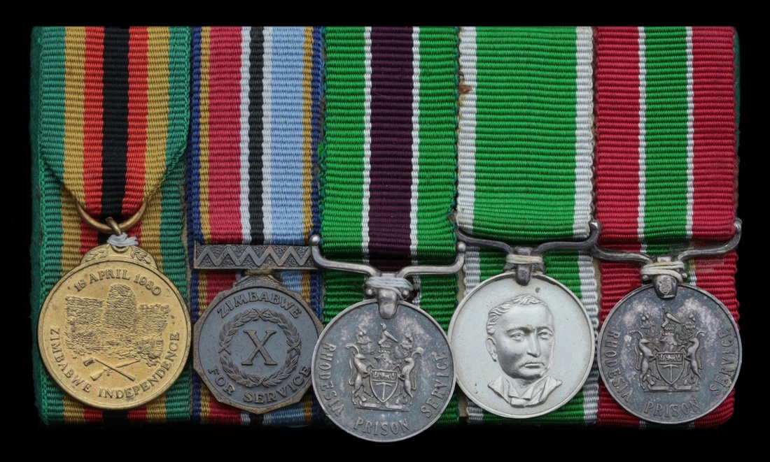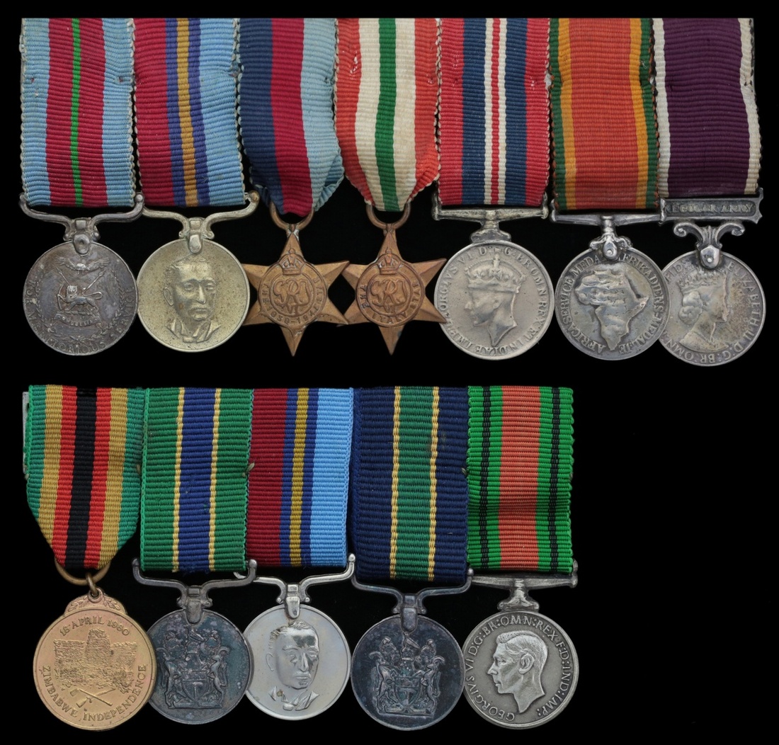 Three mounted groups of miniature dress medals of Rhodesian interest