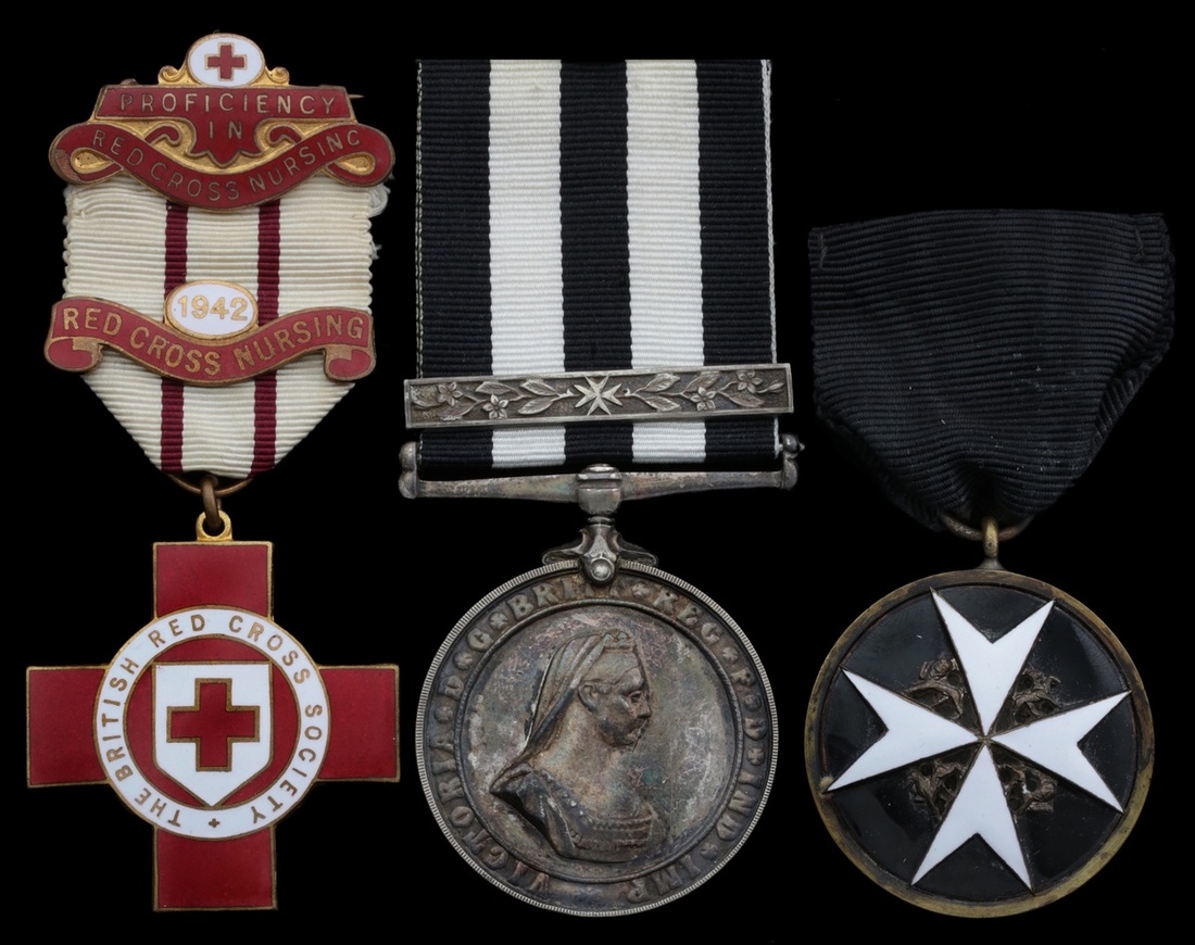 British Red Cross badge for Proficiency in Nursing, 1 clasp, Red Cross Nursing 1942 (31287 R. Gay), The Most Venerable Order of St. John, Serving Brother's breast Badge, silver and enamel; Service Medal of the Order of St John of Jerusalem, with Second Award Bar, (26910. A/Off. W. Reed. No9 Dis. S.J.A.B. 1943), good very fine overall
