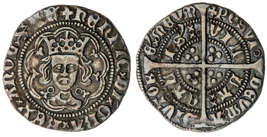 Henry VI (1422-1461), Annulet issue, Halfgroat, 1422-1430, Calais, m.m. plain cross, 7h, 1.79g (North 1429; Spink 1840), lightly polished, otherwise darkly toned and portrait attractively struck up, very fine