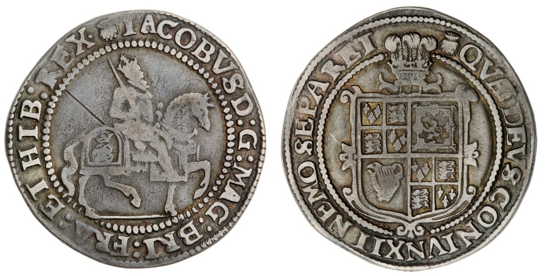 James I (1603-1625), Third Coinage, Halfcrown, 1621-1623, King on horseback right, ground line below, rev. plumes over square-topped and garnished shield, 3h, 14.55g, m.m. thistle (North 2123; Spink 2666), scratch through obverse field from horse to legend, some weakness to legends and portrait rubbed, otherwise toning to recesses, about very fine and rare
