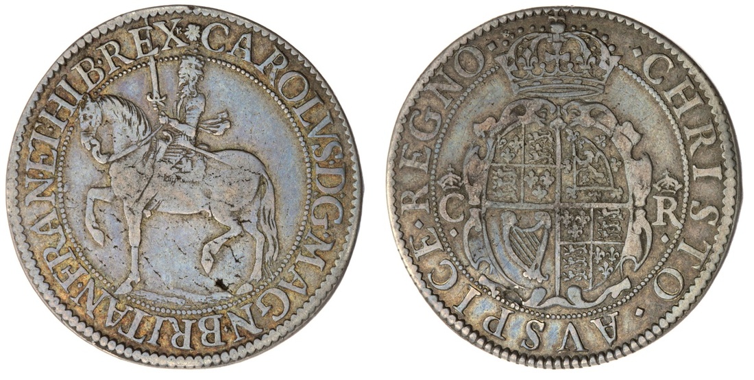 Charles I (1625-1649), Briot's First Milled Issue, Halfcrown, 1631-1632, Tower, armoured King on horseback left, holding sword upright, ground below, rev. crowned oval-garnished shield, dividing crowned cypher, 6h, 14.74g, m.m. flower and B / B (Brooker 715 same dies; North 2299; Spink 2852), some metal stressing to the obverse, a touch of rub to the highest points, otherwise pleasingly toned, bolder very fine, scarce
