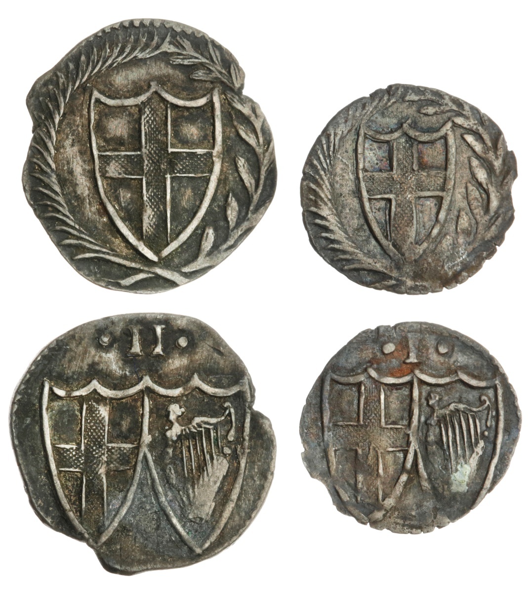 Commonwealth (1645-1660), Halfgroat, undated, Tower, 8h, 0.95g (North 2728; Spink 3221); Penny, undated, Tower, 1h, 0.41g (North 2729; Spink 3222), both with chipped flans and lightly stained, some rust to the Penny, both fine (2)