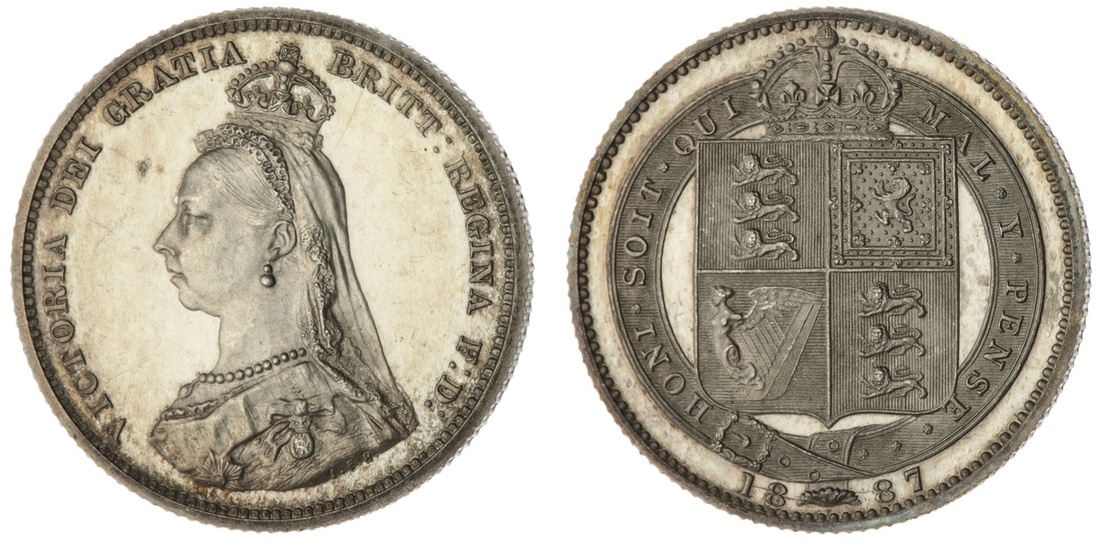 Victoria (1837-1901), 'Golden Jubilee' Proof Shilling, 1887, crowned 'Jubilee' bust left, by J. E. Boehm, rev. crowned shield in Garter, edge milled, 5.65g, 11h (ESC 1352; Bull 3138; Spink 3926), faint bag marks in otherwise brilliant fields, some small die breaks in recesses, nevertheless an appealing Proof, good extremely fine
