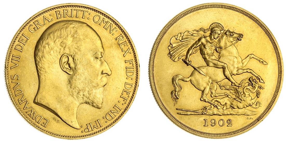 (g) Edward VII (1901-1910), Matte Proof Five-Pounds, 1902, by de Saulles and Pistrucci, bare head right, rev. St George and Dragon, edge milled, 39.98g, 12h (W&R 404; Stratos 206; Spink 3966), lightly cleaned, otherwise extremely fine
