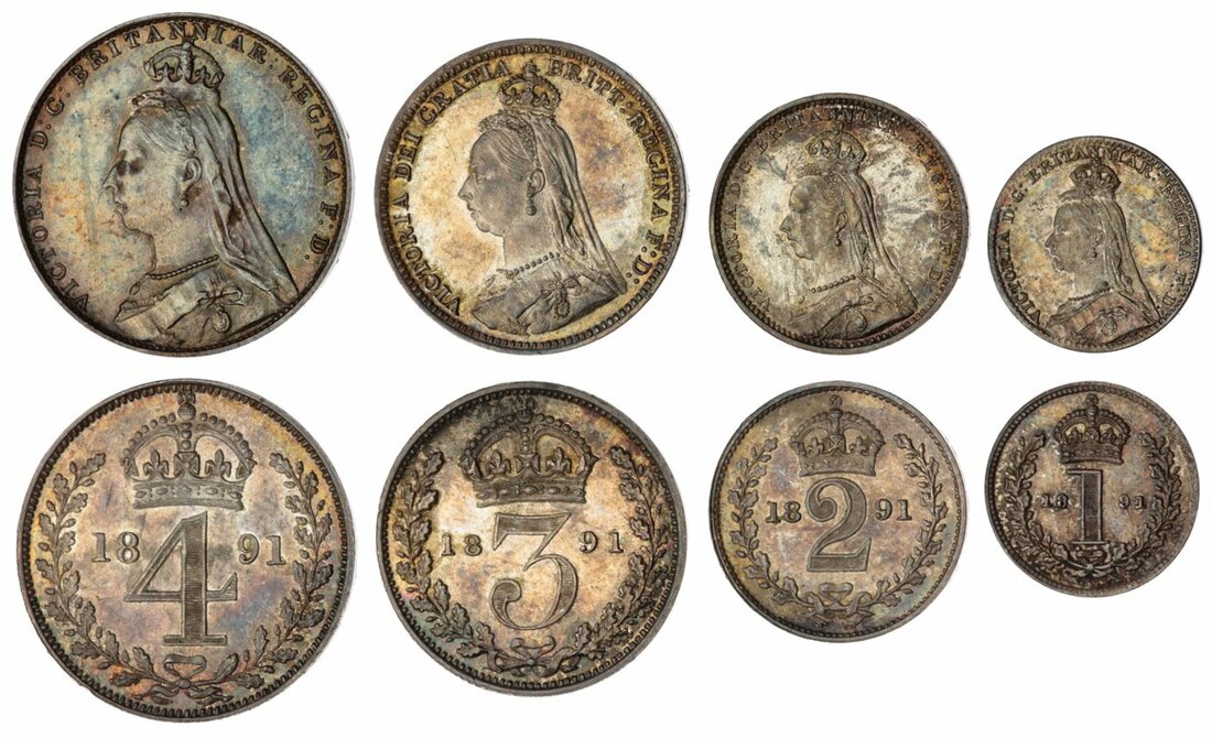 Victoria (1837-1901), Maundy Set, 1891, 'Jubilee' head left, rev. crowned mark of value, edge plain (Bull 3549; ESC 2506; Spink 3932), some marks to Fourpence and Twopence obverse field, otherwise lustrous and lightly toned, near extremely fine (4)