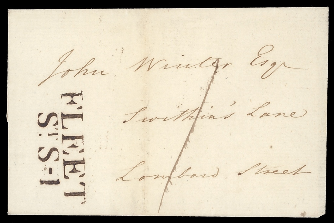 1794 (18 Sept.) entire to Lombard Street with a phenomenal strike of the "FLEET/St. S-1" receiving House marking (used during the first year of the experimental period); light vertical filing fold well clear of the marking; fine and of Exhibition quality.
