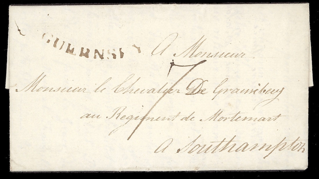 1796 (14 Dec.) entire letter in French from Guernsey to Southampton charged "7" with attractive curved "