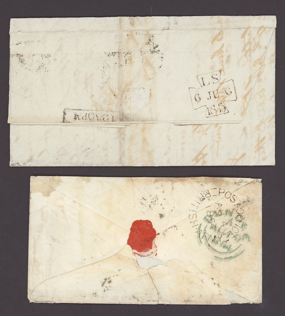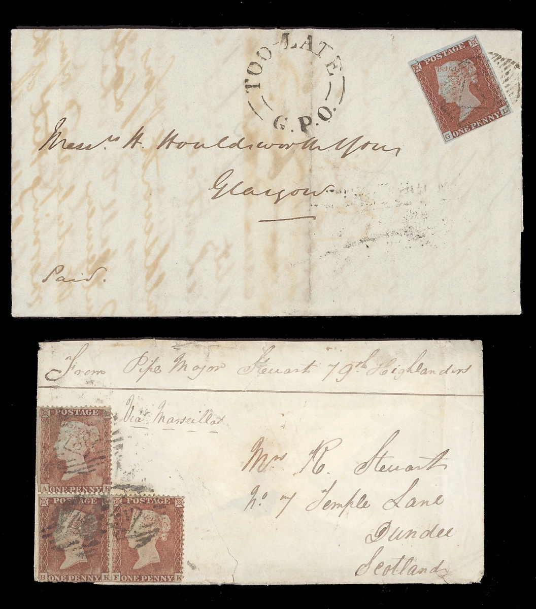 1845 (6 June) entire letter to Glasgow, franked 1841-54 1d. Plate 54 (close to large margins) with London "1" barred oval cancellation with brilliant