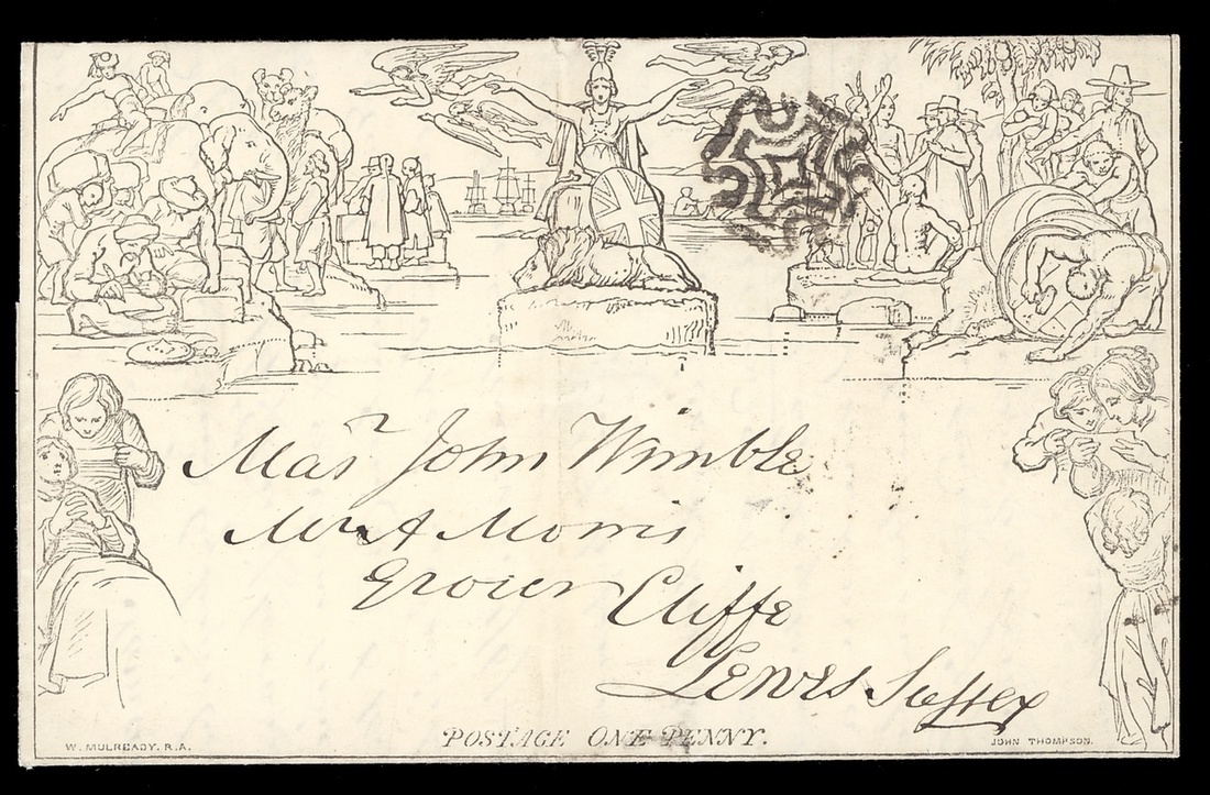 A27, dated 1841 (23 Aug.) from Brighton to Lewes, black Maltese Cross cancellation completely clear of Britannia, dated markings on reverse; light vertical crease, fine and attractive
