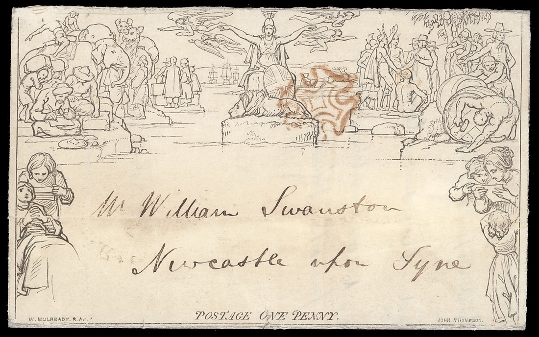 A51, dated 9 Oct. 1840 to Newcastle upon Tyne, light red Maltese Cross cancellation in the brownish shade associated with Newcastle-Under-Lyme, dated marking on reverse; some creases and faults