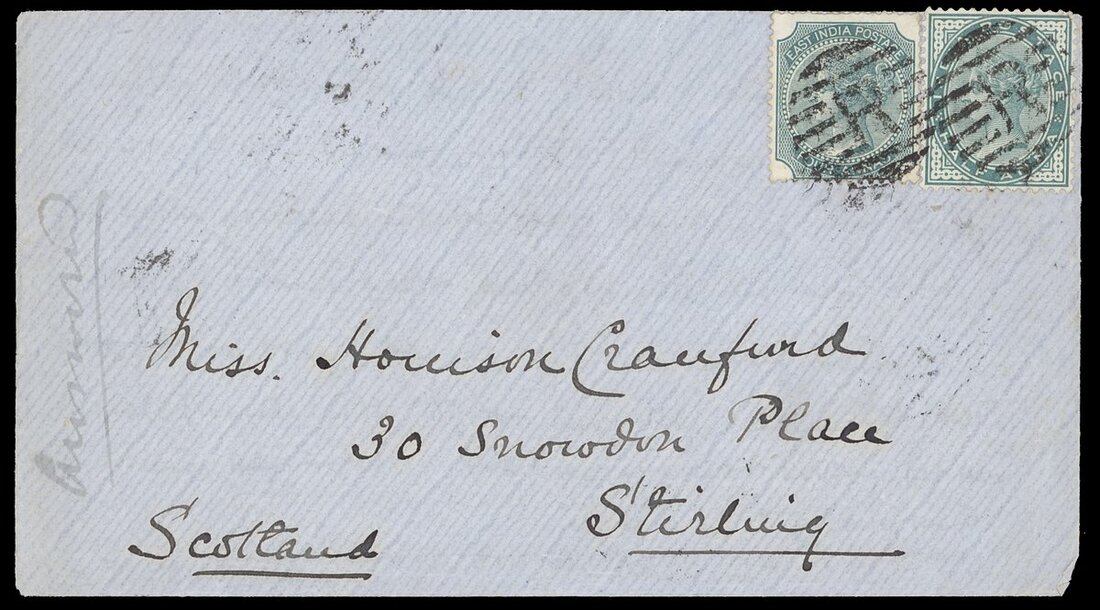 1887 (12 Jan.) envelope (with original contents) ex the Craufurd correspondence to Scotland, bearing ½a. and 4a. tied by