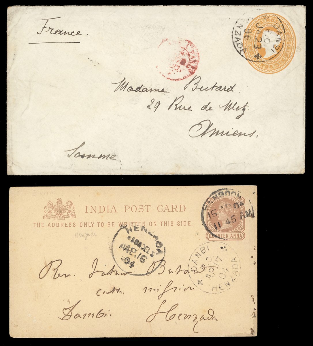 1896 (23 Jan.) 2½a. stationery envelope to France, clearly cancelled by
