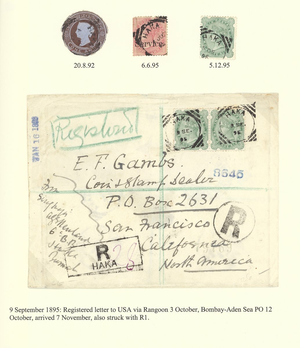 1895 (9 Sept.) envelope registered to San Francisco, bearing ½a. block of four (on reverse) and 2½a. pair clearly tied by