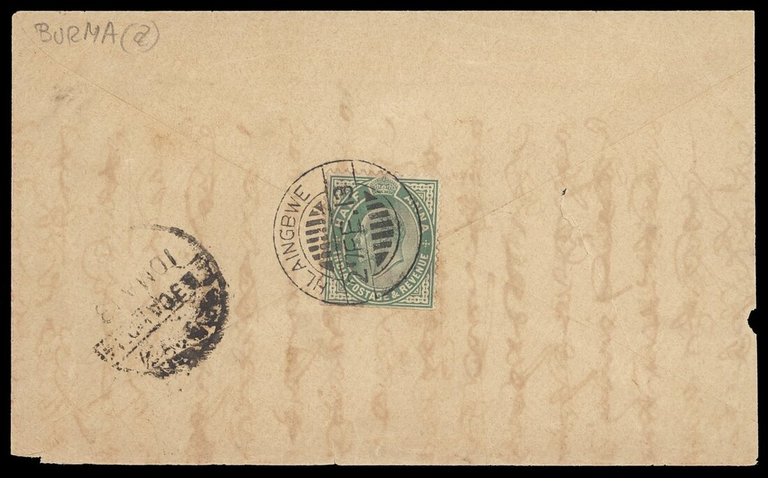 1913 (27 Feb.) envelope to India? bearing, on reverse, KE ½a. tied by fine