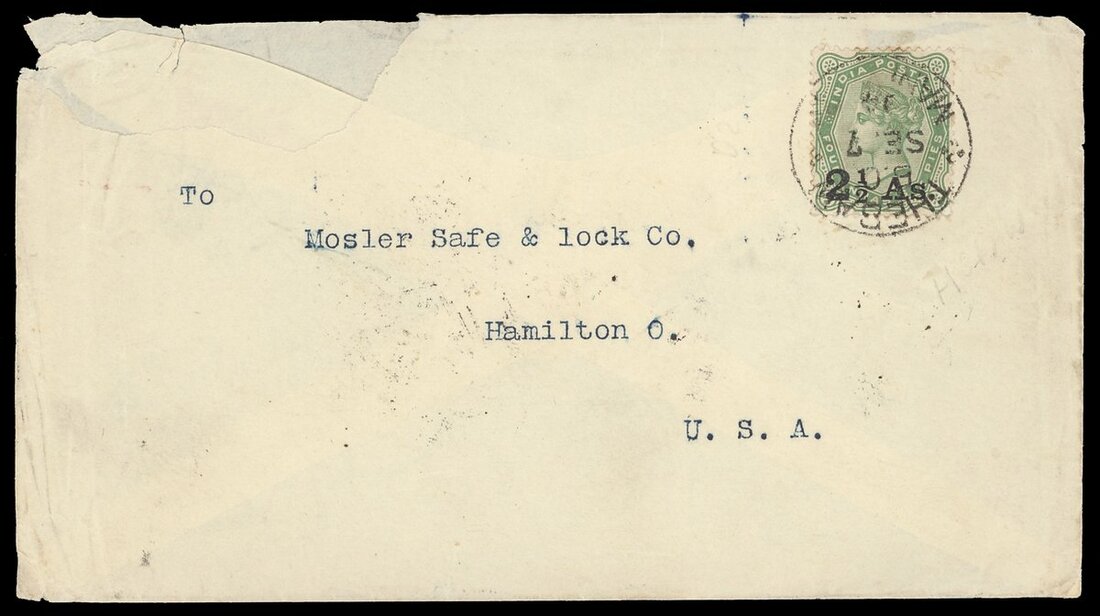 1894 (7 Sept.) envelope to USA, bearing 2½a. on 4½a. tied by