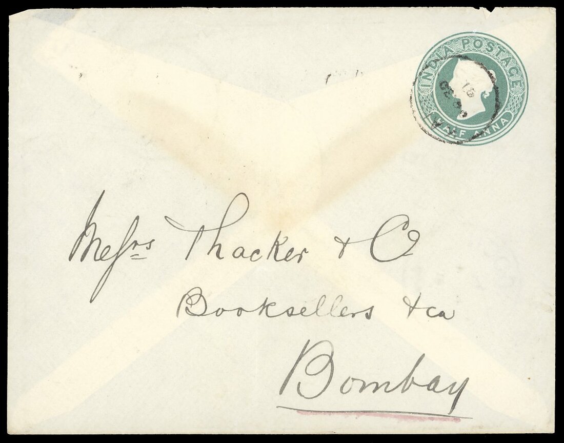 1891 (30 Oct.) ½a. stationery envelope to Bombay, cancelled by legible