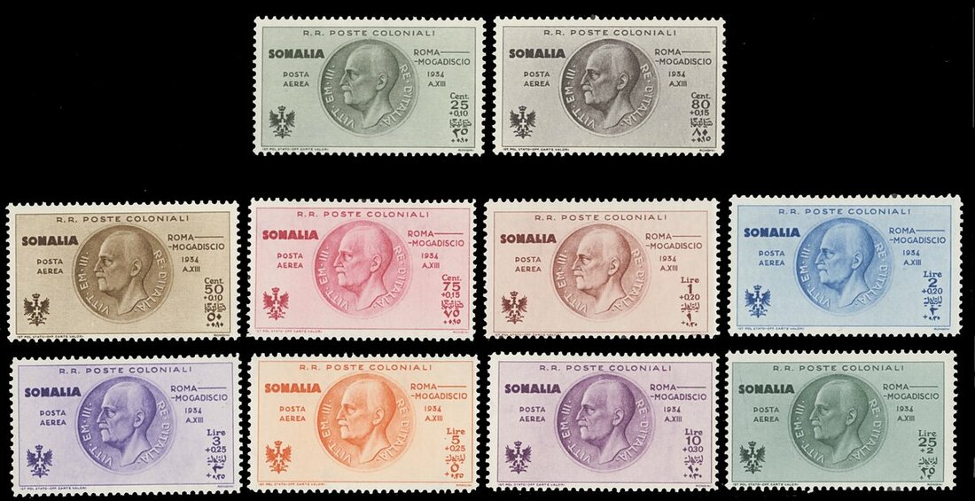 1934 Air Post Semi-Postals, 25c+10c grey-green to 25l+2l deep green, never hinged, fresh and fine. Sc. CB1-10, $375