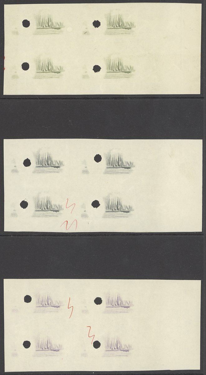 1935 Silver Jubilee set of four vignette printer's imperforate plate proof marginal blocks of four on gummed paper, each stamp with a 4½mm. puncture, three of the blocks with small manuscript printer's corrections. A fine set