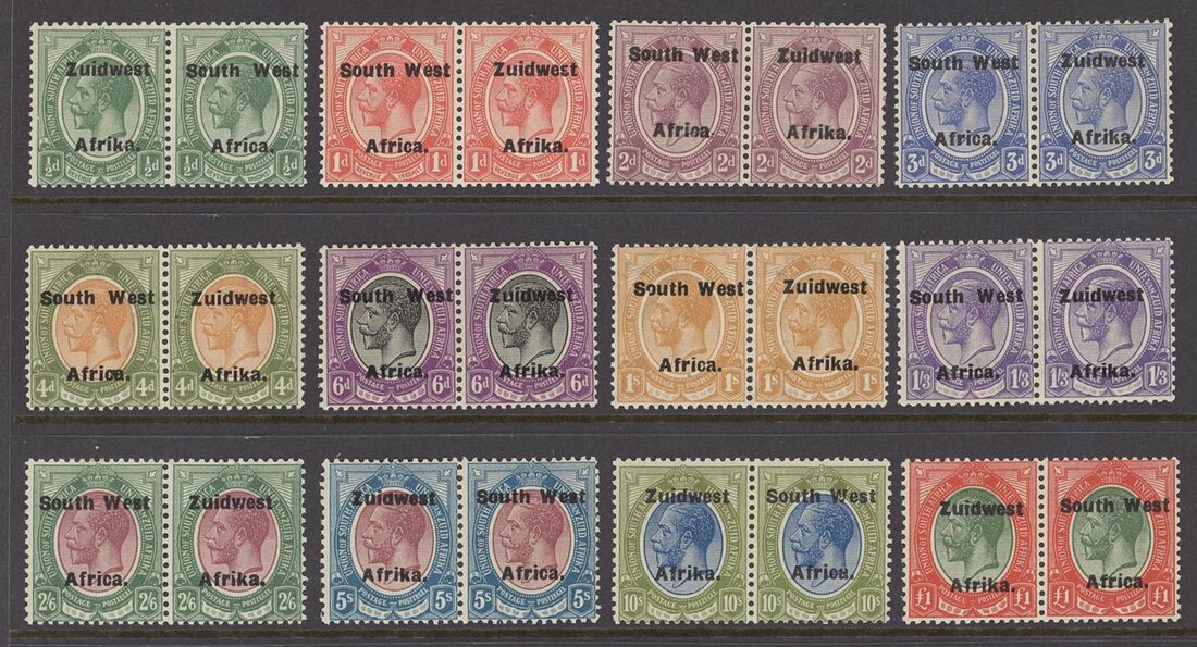 1923-26 Setting VI ½d. to £1, the set in bilingual pairs, unmounted mint, fine and scarce. S.G. 29-40, £550