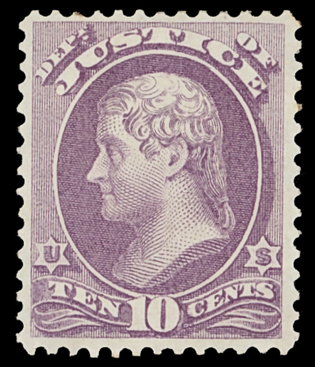 1873, 10c purple Justice, hinged, some gum disturbance, delicate shade, very fine. (Sc. 029, $310)
