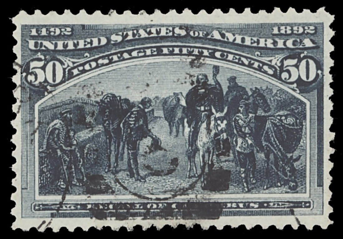 1893, 50c Columbian, used with duplex cancel, well-centered, very fine. (Sc. 240, $175)