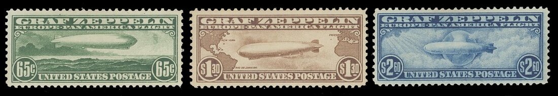 1930, 65c to $2.60 Graf Zeppelin, hinged, the $2.60 with heavy hinge remnant, top two values with some gum creasing, nicely-centered and with good colour, very fine. (Sc. C13-15, $1,080)