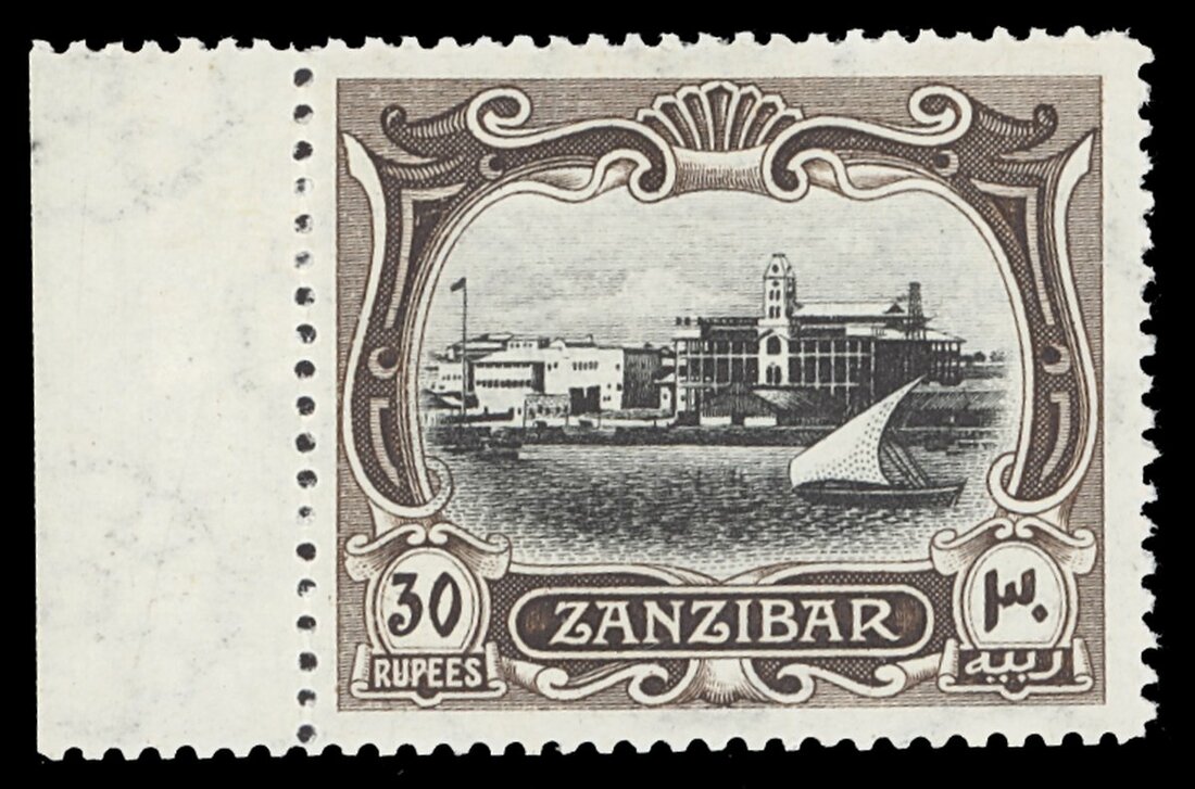 1908-09 30r. black and sepia, from the left of the sheet; unmounted mint, well-centred and very fine. S.G. 241, £750