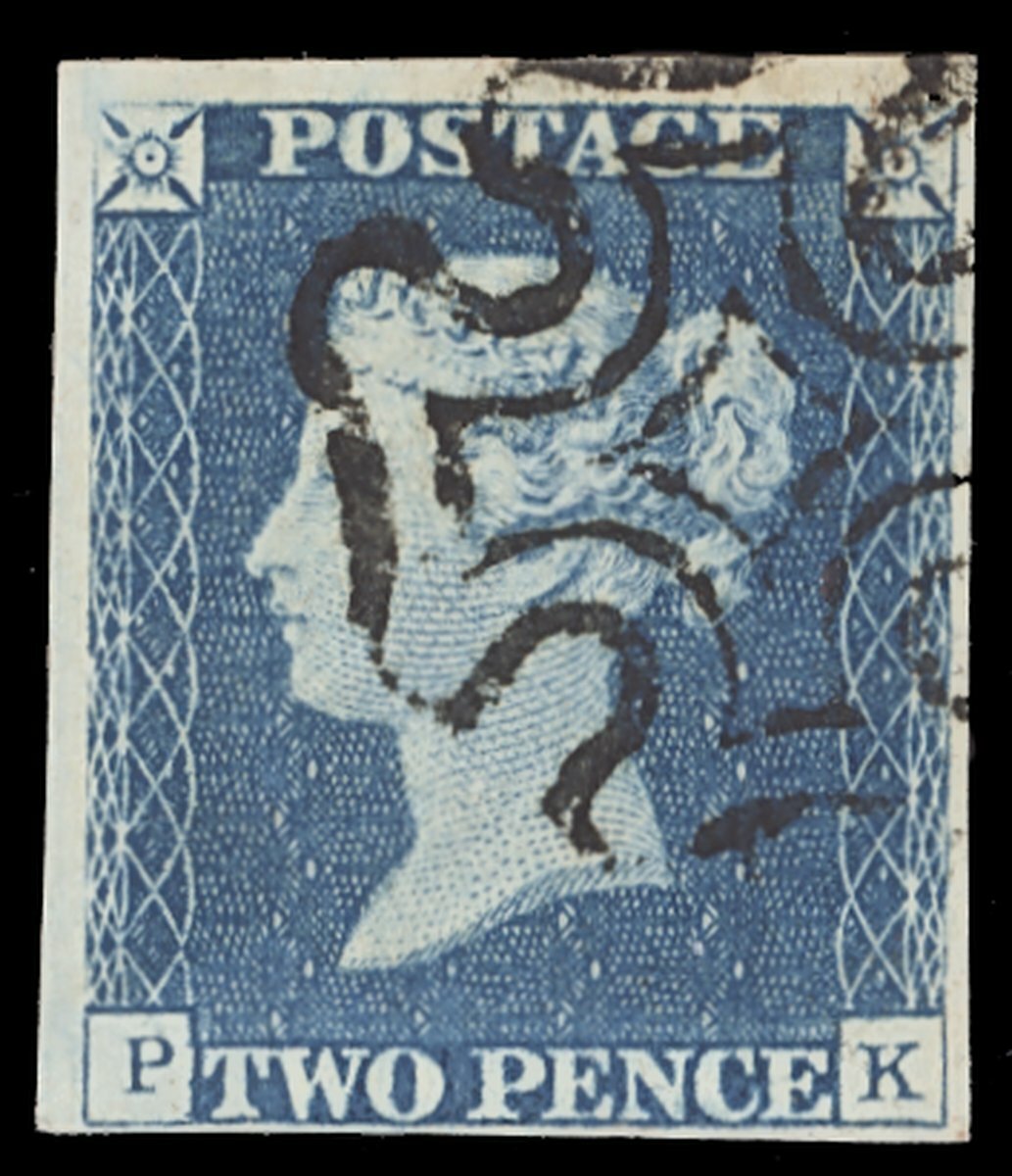 PK, in delightful rich shade, four clear margins, cancelled by crisp Maltese Cross in black, very fine. S.G.  £975+