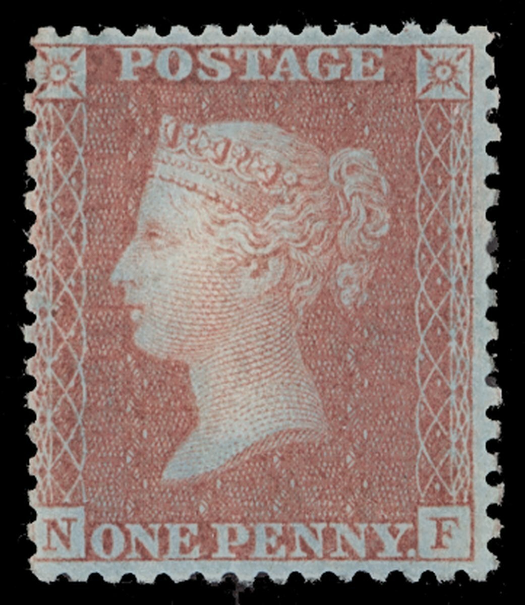 Plate 14: NF, 1d. brown-rose, large part original gum, a very fine example. S.G. 32,  £375