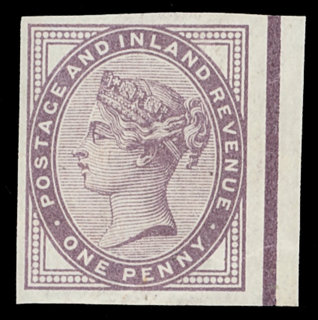 1d. lilac from the right of the sheet, variety imperforate, full original typically brownish crackled gum and sheet margin neatly trimmed down, a superb example of this variety. B.P.A. Certificate (2011). S.G. 147a, £6,000 (as pair).