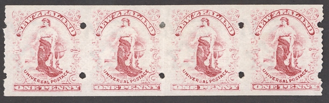 1905-06 1d. carmine, penny-in-the-slot machine mint strip of four, rouletted 9½ at either end, a couple of light diagonal gum bends, large part original gum. S.G. 361, £800; CP GS1a, $1,400+
