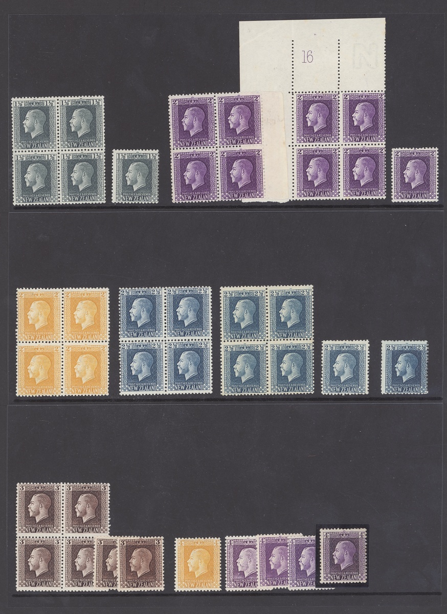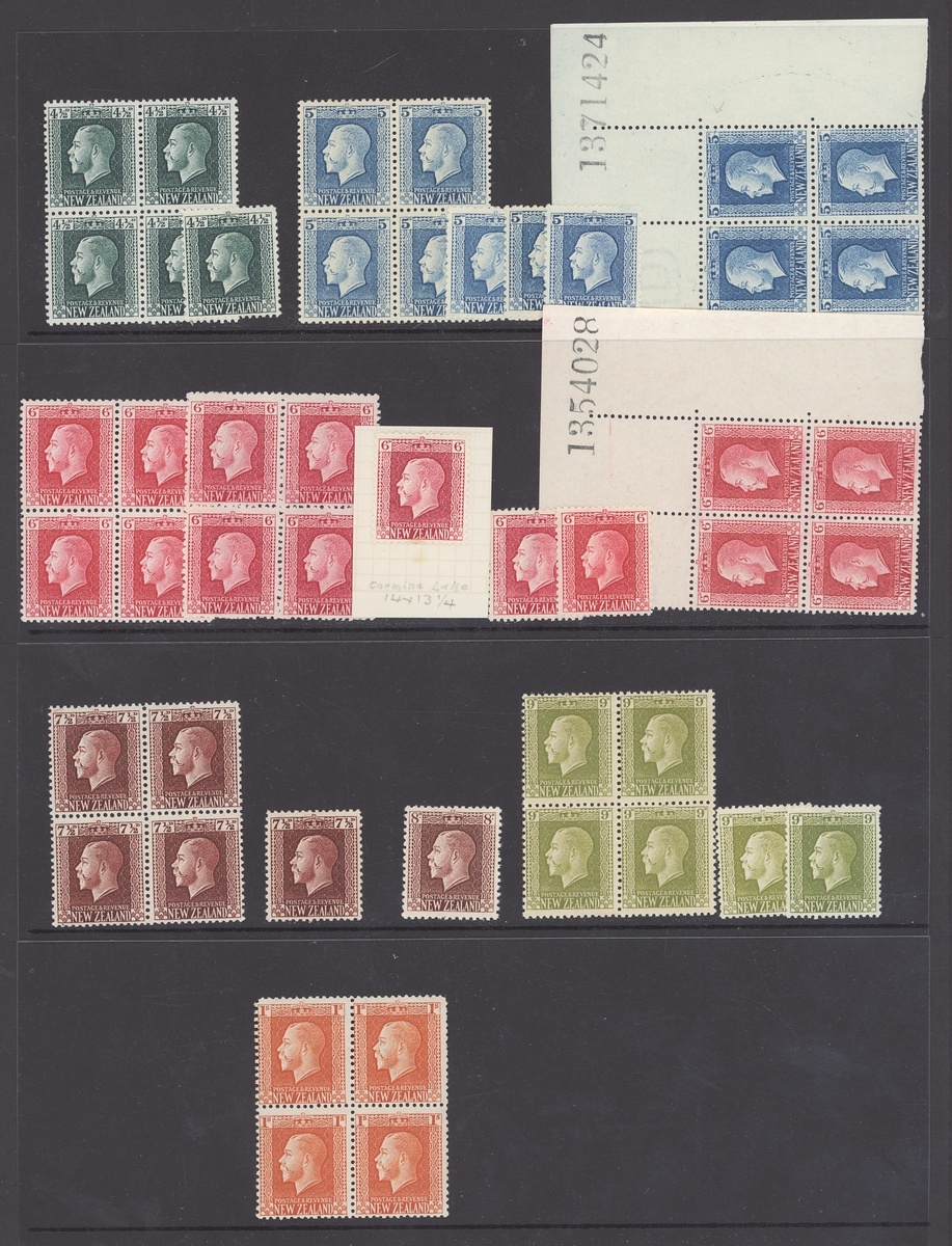 Perf. 14 x 13½ mint collection with values from 1½d. to 1/- on Hagner pages with a range of shades and blocks of four including 2d. bright violet corner block of four with plate number '16', 2d., 2½d. (2), 3d. and 4d. blocks of four, 5d. light blue corner block of four with sheet number '1371424', 6d. single example in the carmine-lake group, 6d. carmine blocks of four (2, one from the corner with sheet number '1354028'), 7½d., 9d. and 1/- blocks of four, a range of single examples in intermediary shades, etc., chiefly fine wth large part original gum. S.G. 416-430c group