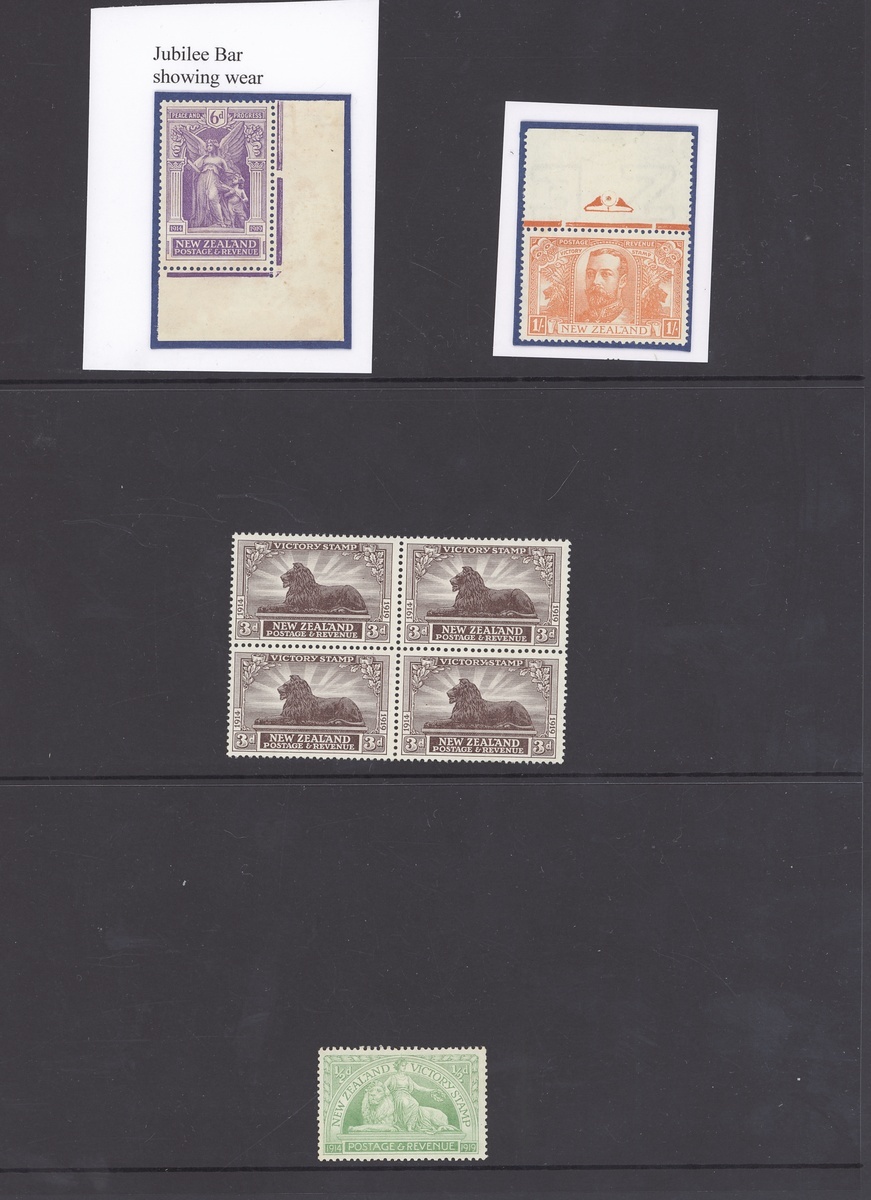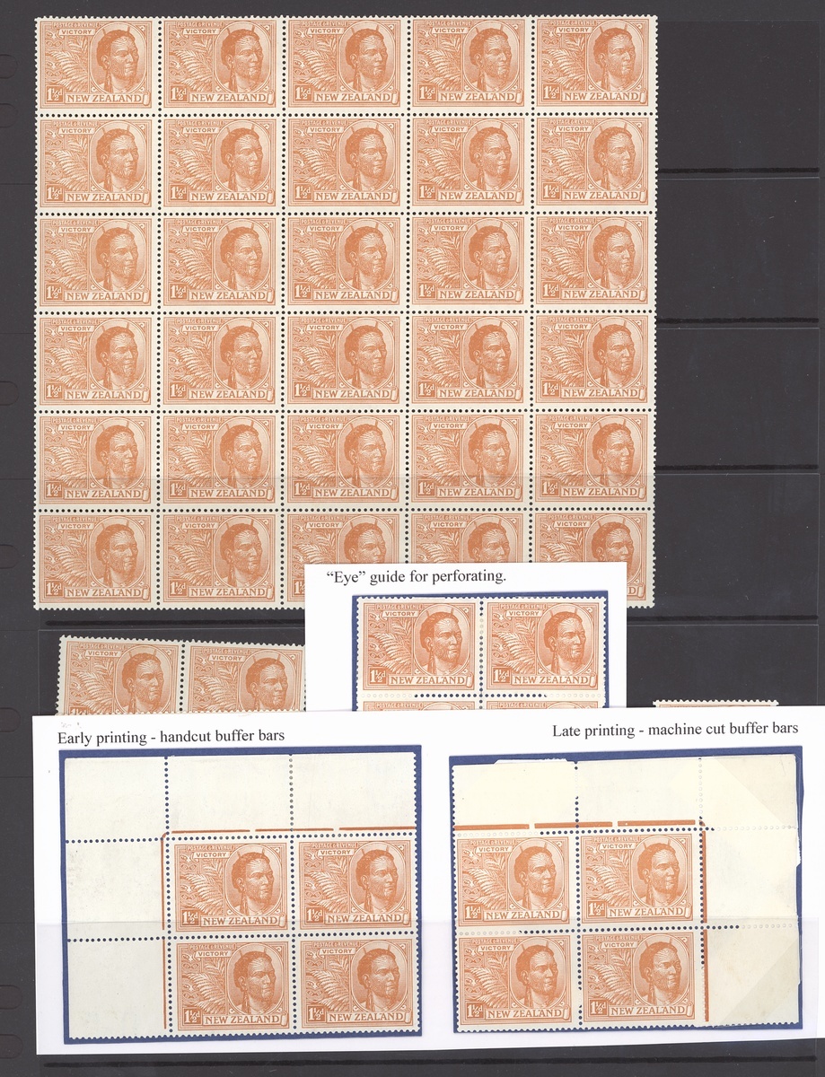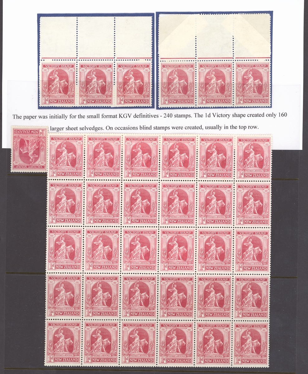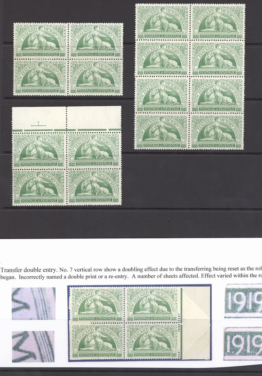1920 Victory, a fresh mint range on Hagner pages including large multiples of the ½d., 1d., 1½d. and 2d. on ½d., as well as minor plate flaws and all values present to 1/- including ½d. pale yellow-green, a 3d. block of four and 1d. with watermark inverted, etc.; chiefly fine with the majority unmounted mint